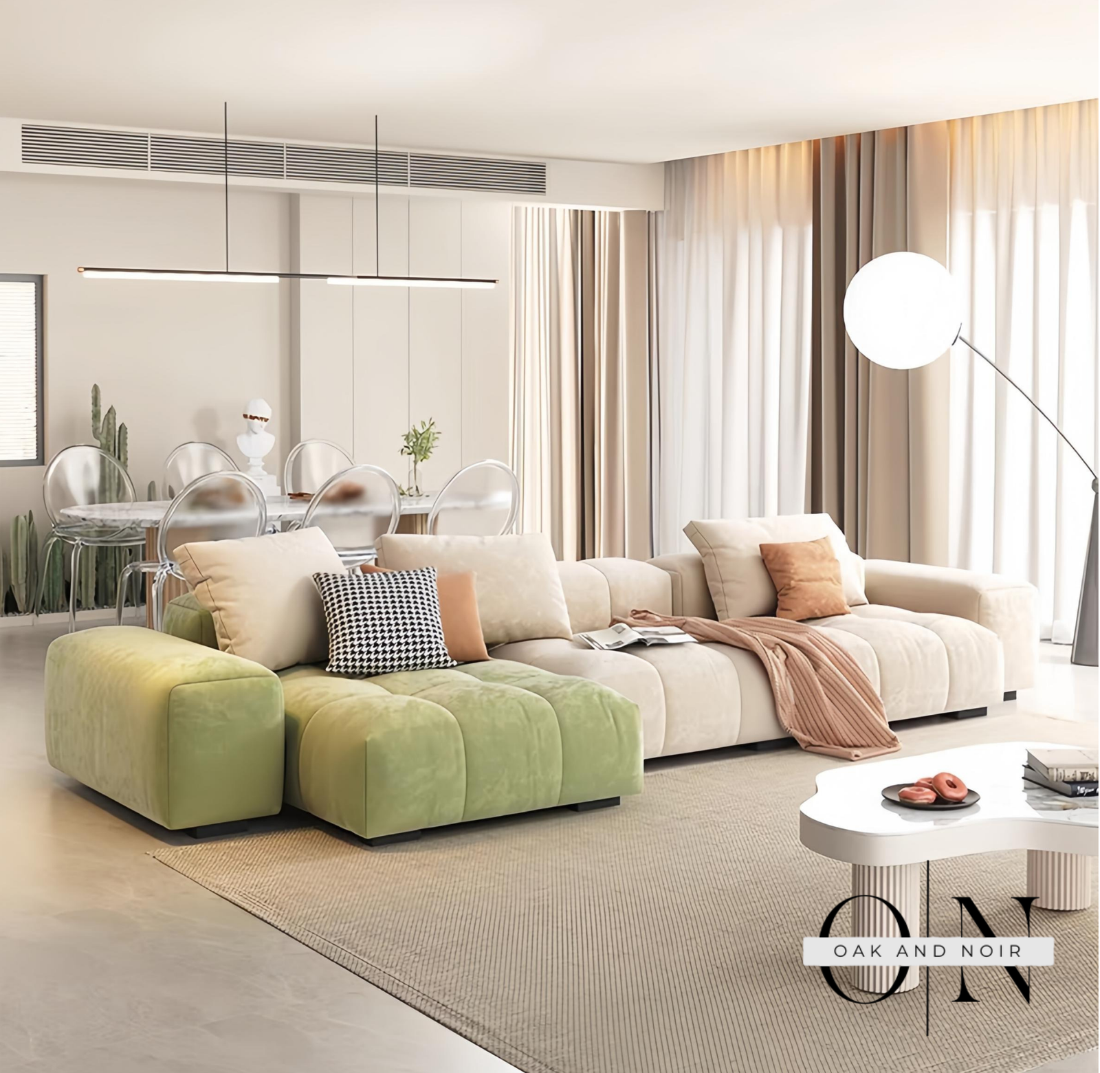 The Mezzo Pop Modular Sofa is a playful yet premium seating system designed for versatile living. With softly contoured shapes, color block upholstery, and pillow-style backs, it’s a sofa that doesn’t take itself too seriously — but never compromises on comfort.