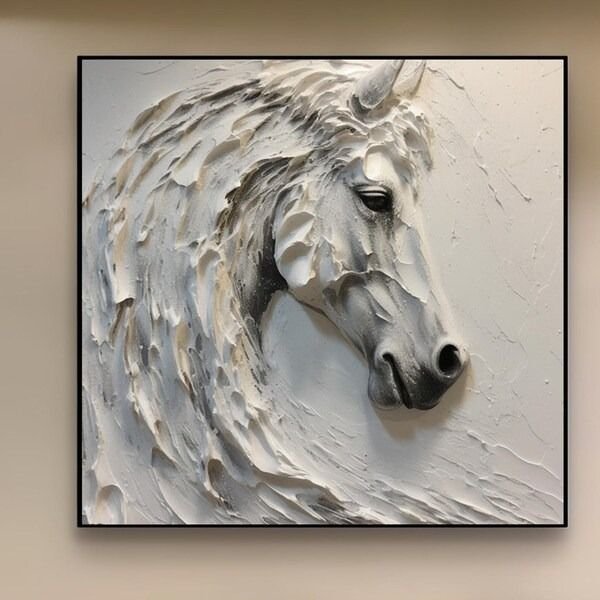 A dynamic 3D horse head in monochrome hues, symbolizing strength and motion