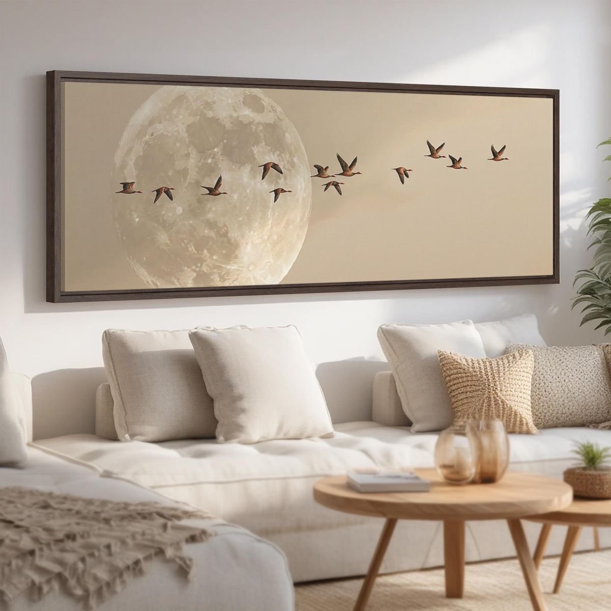 Soft feathers in flight, frozen in a golden glow, to add grace and motion to living spaces