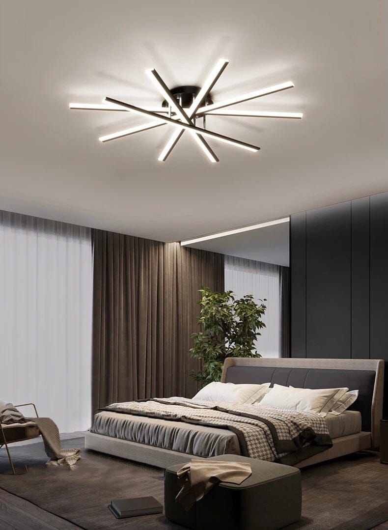 Modern ceiling light with radiating LED arms in a starburst design