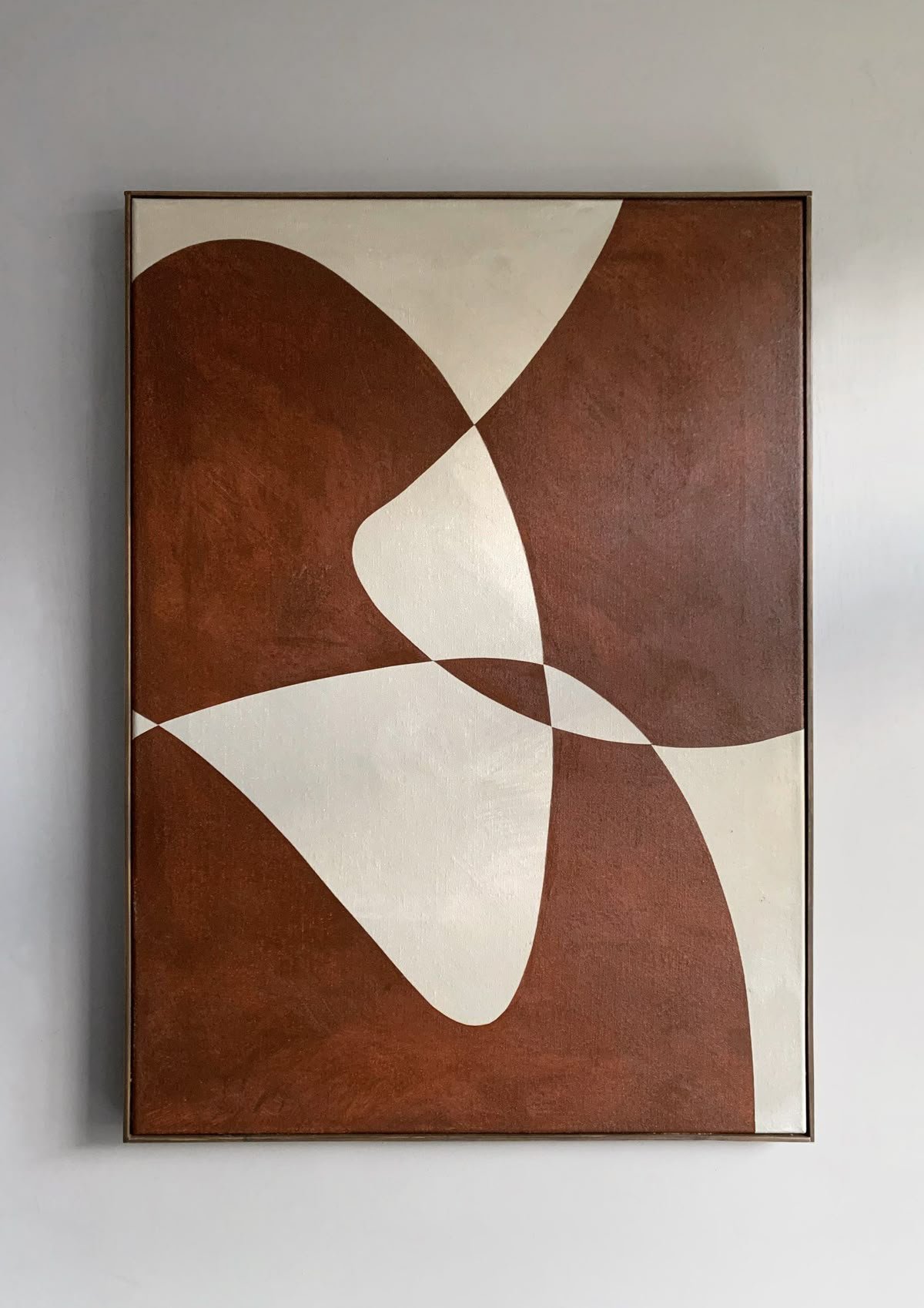 Abstract terracotta shapes intersect across a neutral backdrop, creating a modern and earthy vibe