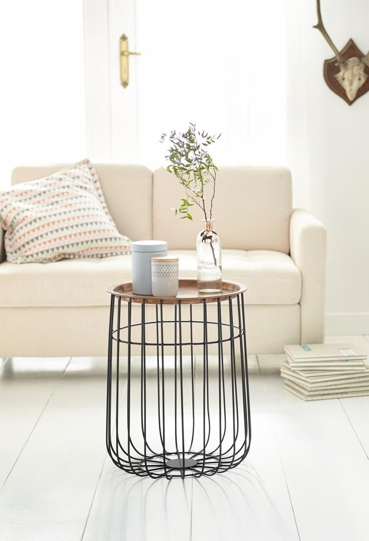 A chic wire-style base supporting a glass top, blending industrial and modern aesthetics